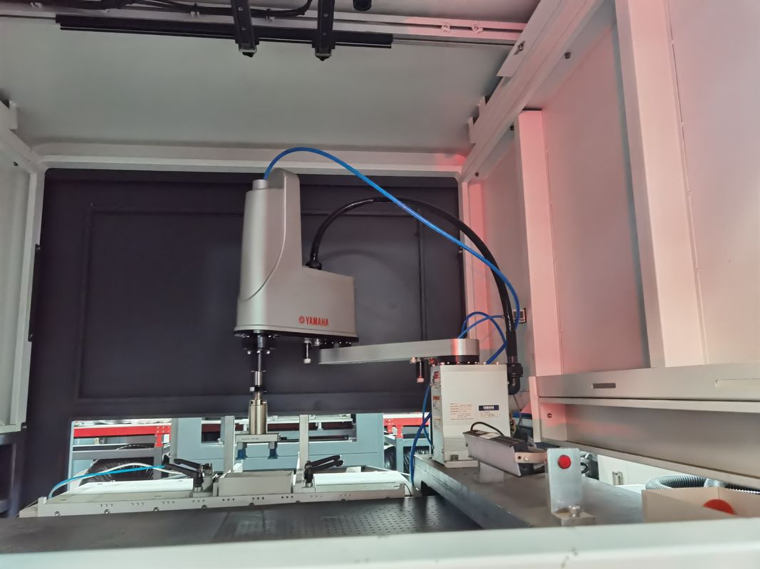 1, usando dos cámaras industriales con 5 millones de pixeles, y brazo a colocar, alta exactitud de colocación (±0.1mm) del robot de YAMAHA